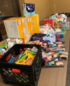 At our holiday party in December, we collected items for Sojourner Family Peace Center.